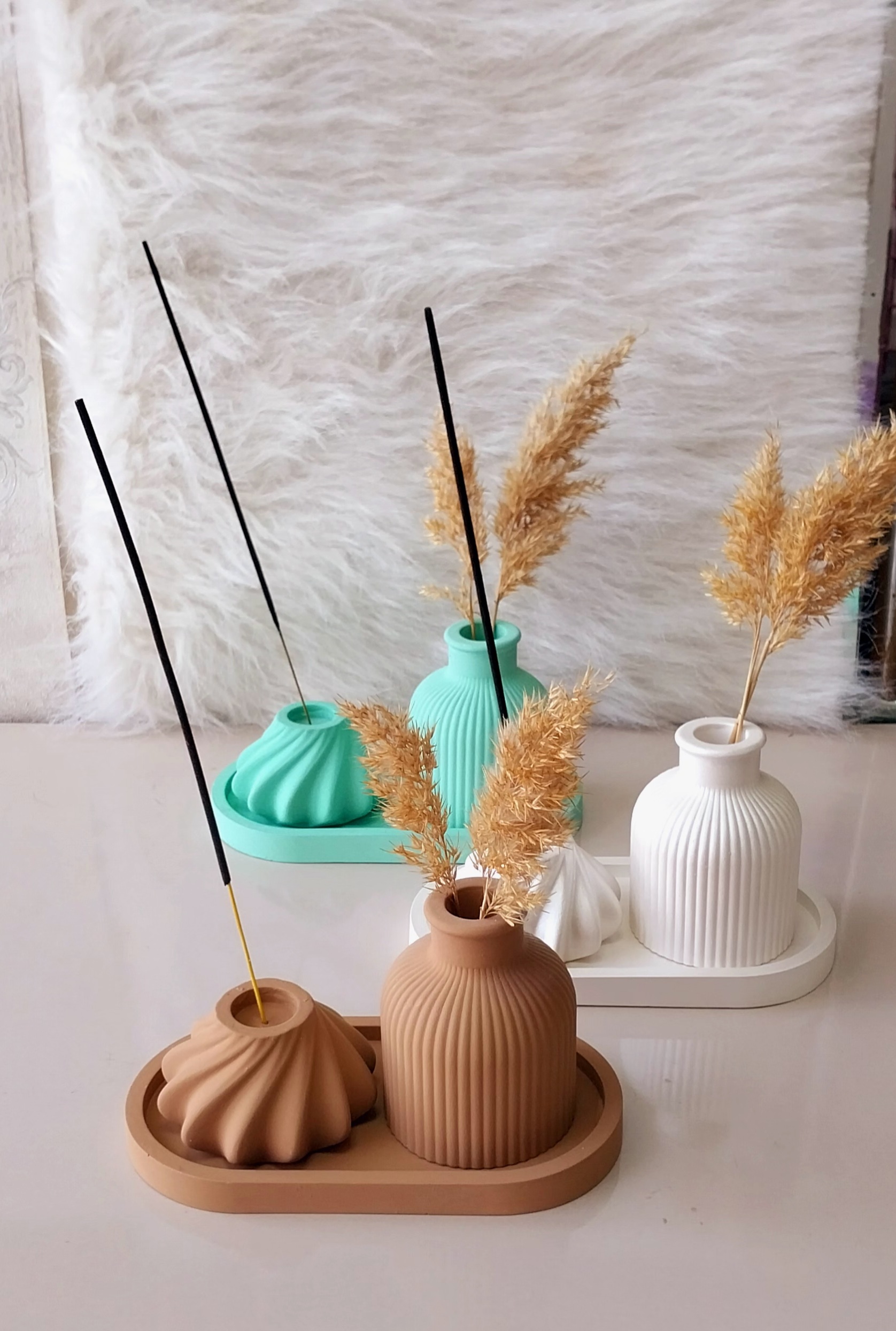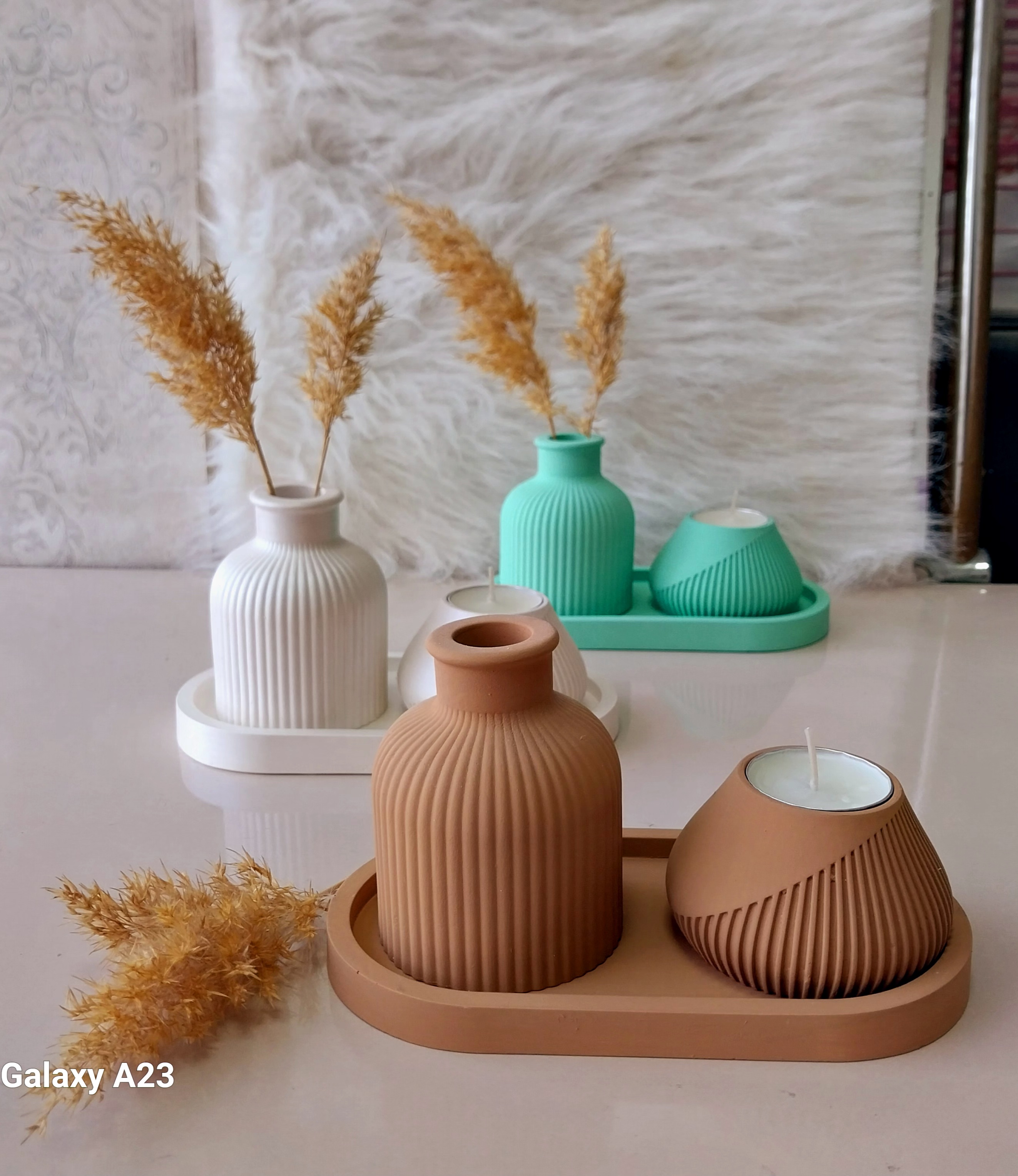 ست دکوری سنگ مصنوعی و شمع معطر مدل شیاردار