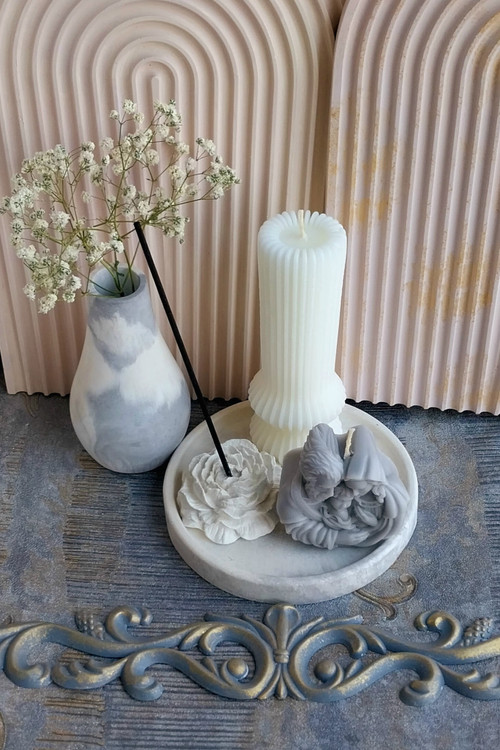 ست دکوری شامل سینی، گلدان، جاعودی، شمع مدل پارلا و آغوش خانواده