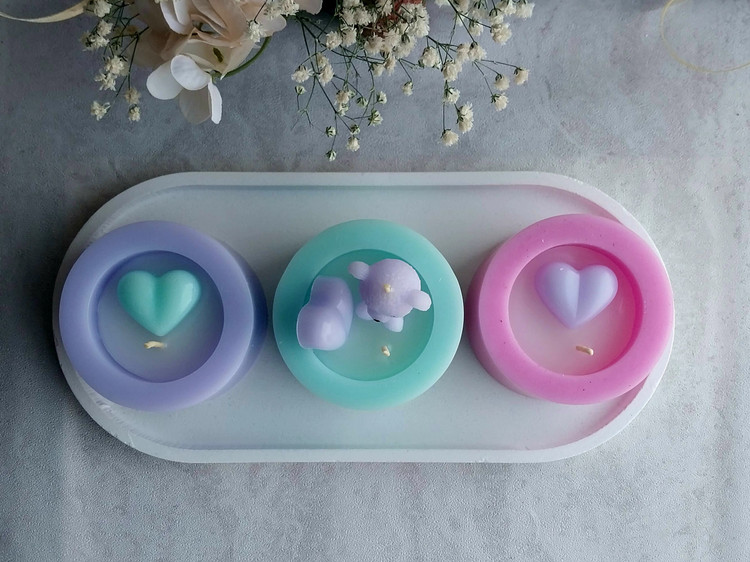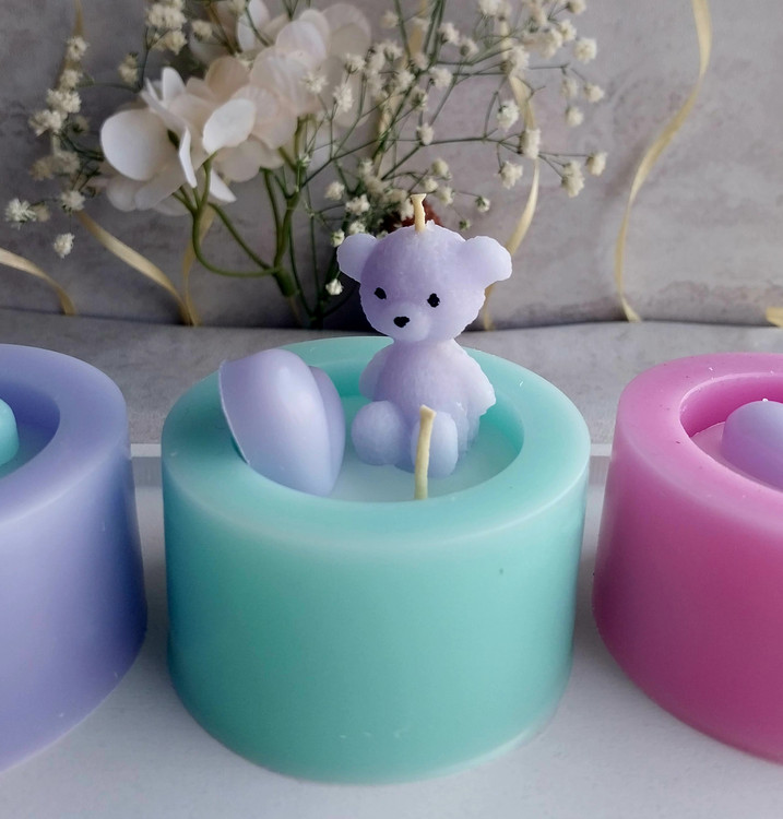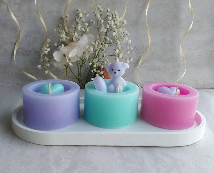 شمع تزئینی مدل تدی و قلب مجموعه ۳ عددی به همراه استند سنگ مصنوعی