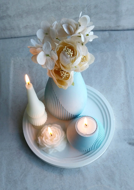 ست جلو مبلی متریال سنگ مصنوعی به همراه شمع تزئینی مدل بلو دایموند