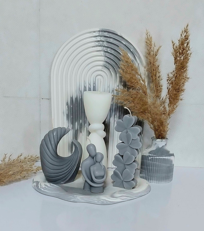 ست دکوری سنگ مصنوعی و شمع تزئینی مدل گری هوم