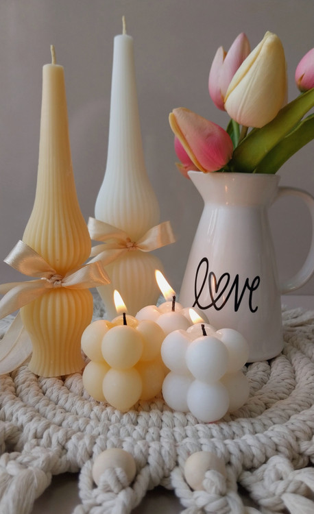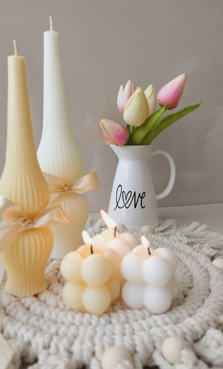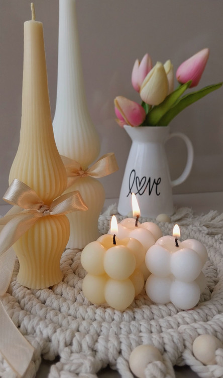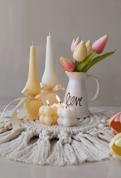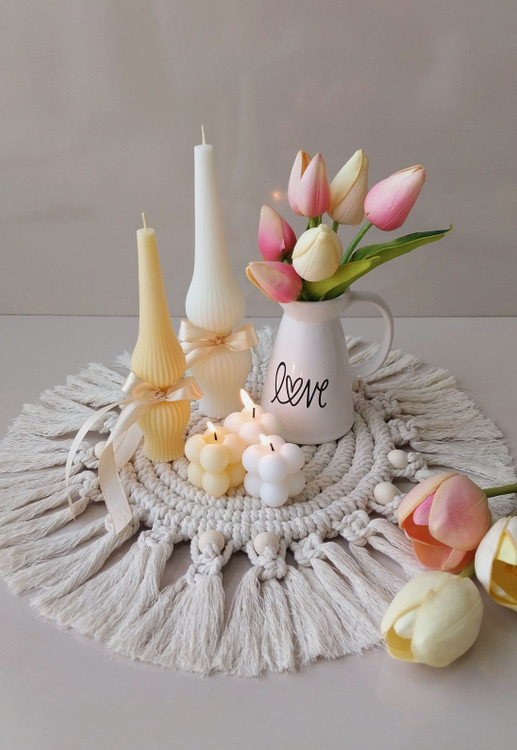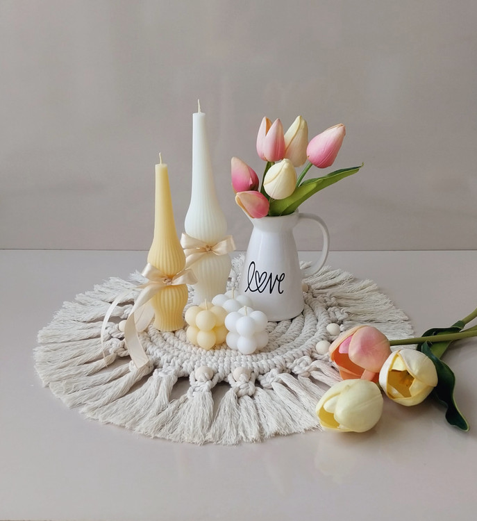 ست دکوری جلو مبلی با رومیزی مکرومه و شمع تزئینی مدل روبیک