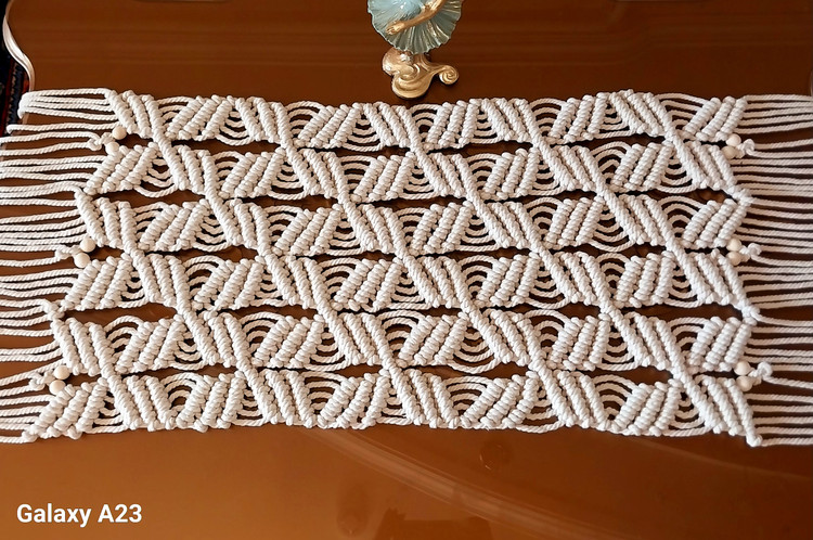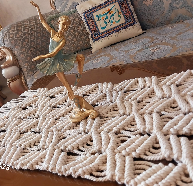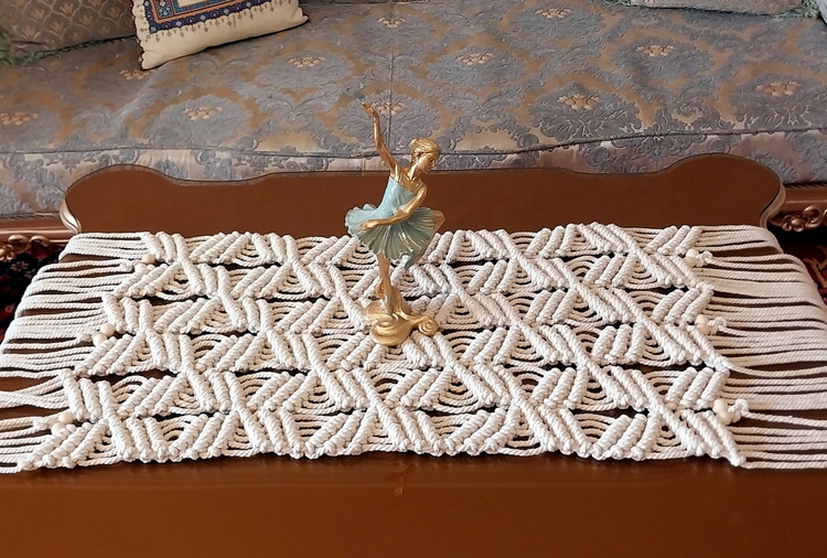 رانر مکرومه بافی مدل دایموند رنگ سفید شیری