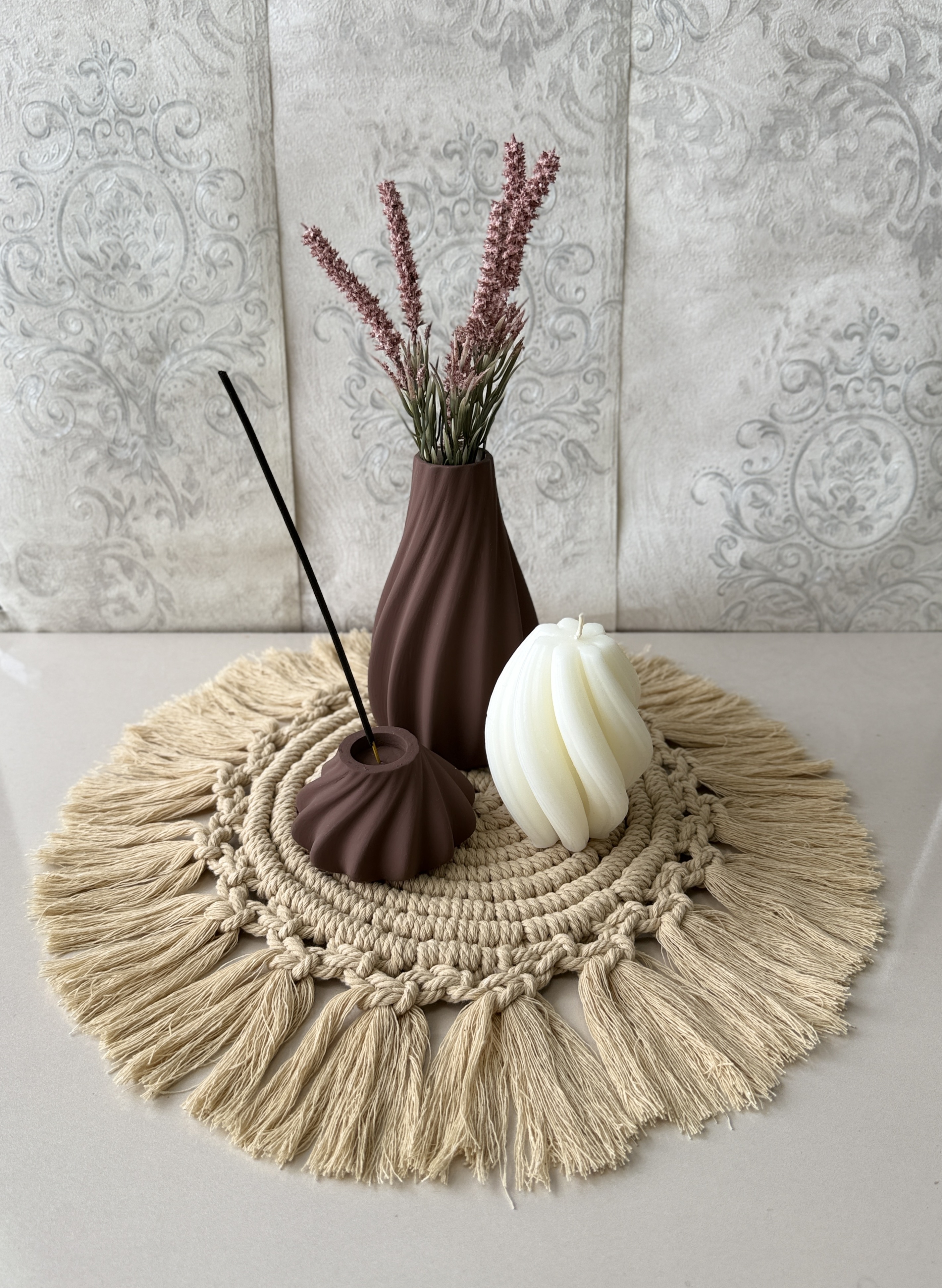 مجموعه دکوری ۳ تکه سنگ مصنوعی و شمع مدل موج