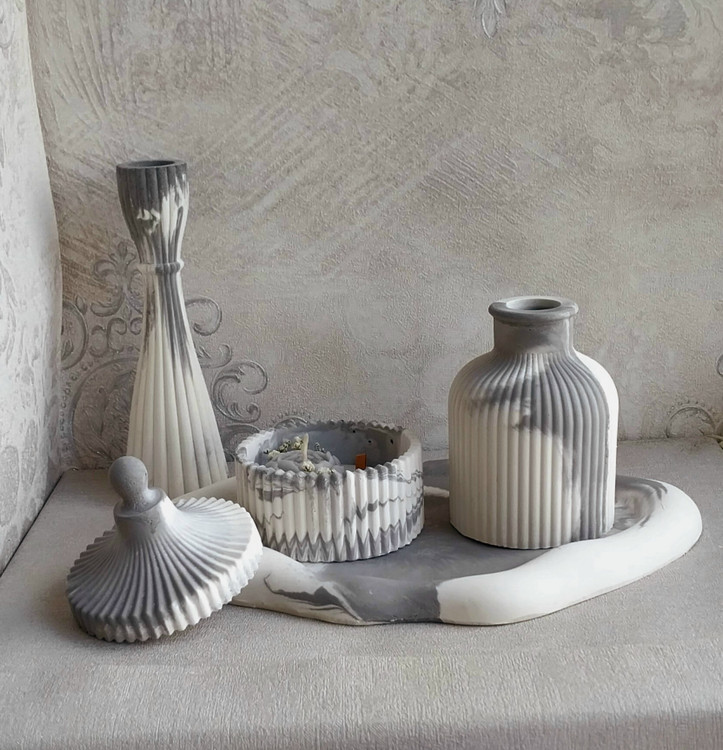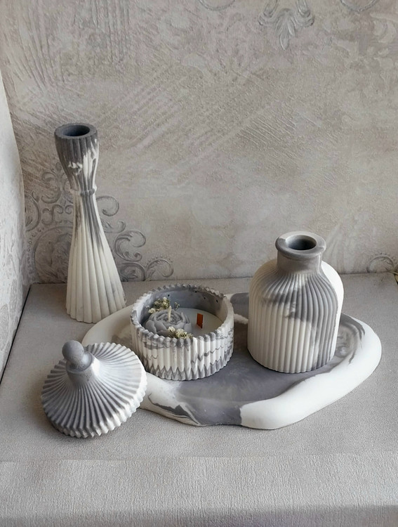 ست دکوری سنگ مصنوعی و شمع معطر مدل شیاردار