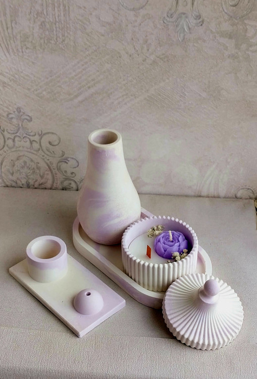 ست دکوری سنگ مصنوعی و شمع مدل غنچه پیونی